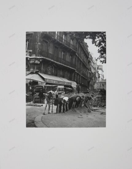 1944 – 壊れた歩道を直すために協力する人々。