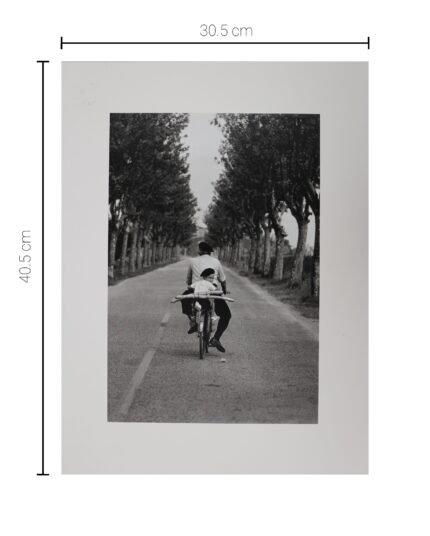 1955 – 自転車で道路を走る男と子供。