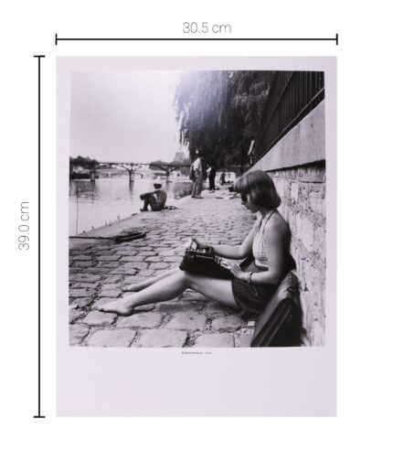 1947 – レンガ造りの歩道に座り、タイプライターを打つ女性。