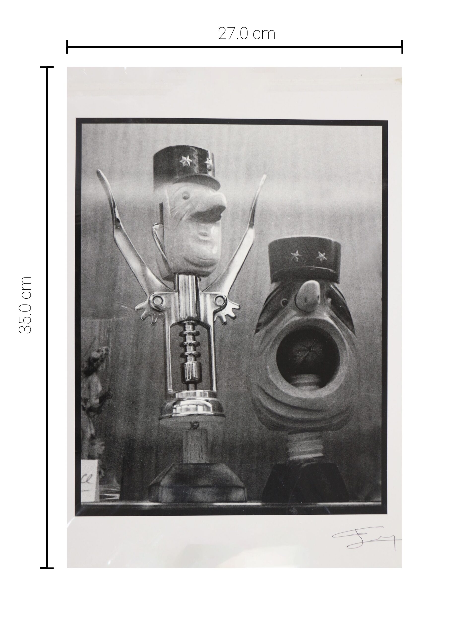 画像は、2つの置物のユニークで気まぐれなディスプレイが特徴で、1つは口ひげを生やし帽子をかぶった男性の像。もう1体は鳥(おそらくオウム)で、口を開けている。男の像はハサミを持っており、遊び心と意外な要素が加わっている。この2つの置物の配置が、興味をそそる愉快な視覚体験を生み出している。男性像と鳥の置物、そしてハサミの組み合わせは、好奇心と喜びを呼び起こし、見る者をこの奇妙なキャラクターの背後にある物語へと誘う。