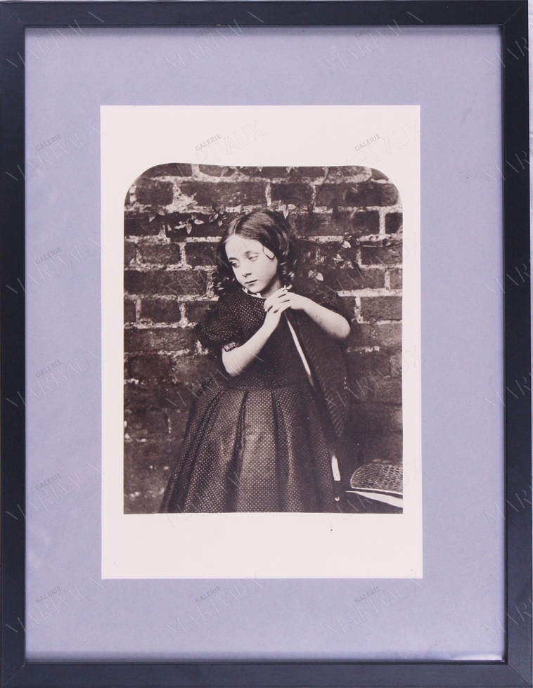 画像は、部屋の中で椅子を胸に抱えて立つ少女をとらえている。少女はドレスを着ており、シーンにエレガントさを添えている。部屋にはレンガの壁があり、居心地の良い親密な雰囲気を醸し出している。少女の姿勢と抱えている椅子が、集中感を喚起している。全体的な構図が無邪気さを伝えている。